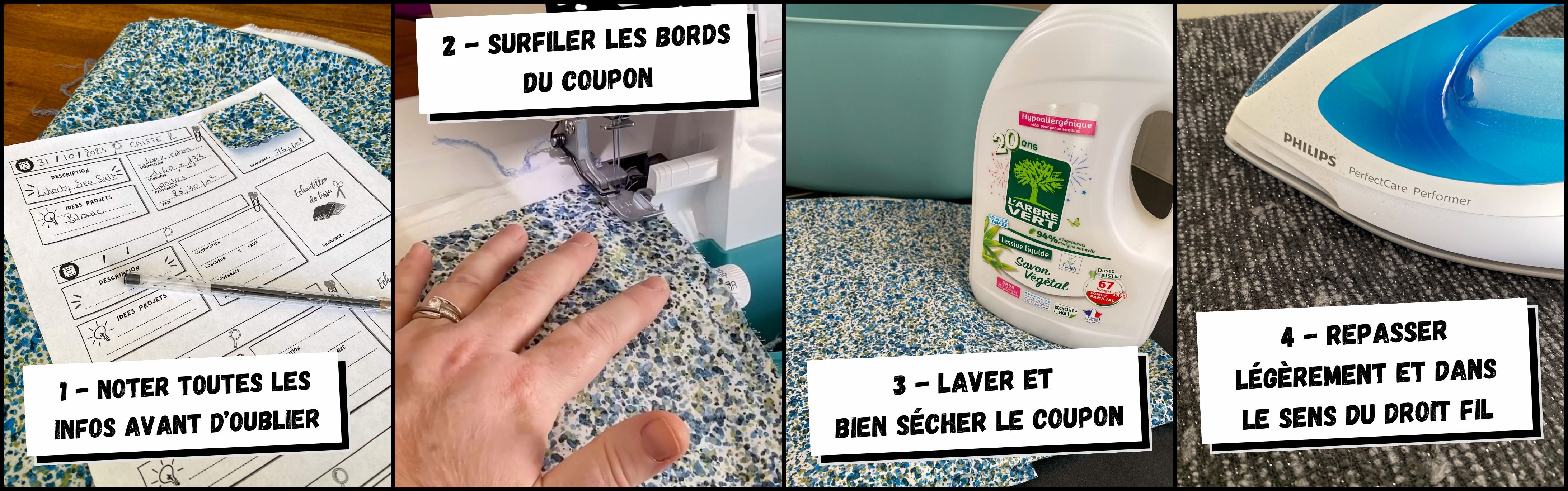 ➔ Avant le lavage : pensez à surfiler les bords de vos coupons !