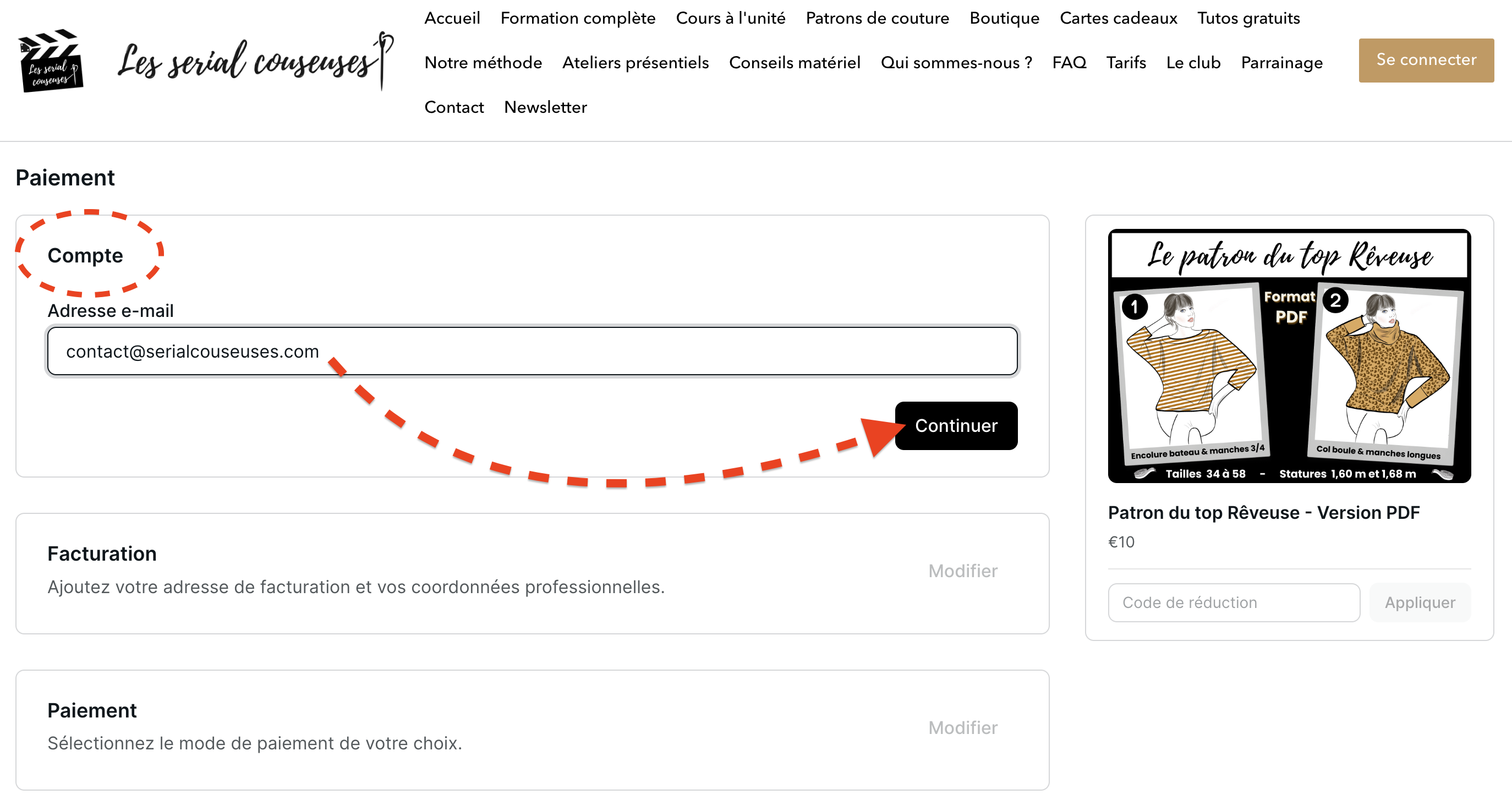 Vous n'avez pas besoin de créer un compte en amont : la création de votre compte se fera automatiquement lorsque vous vous inscrirez pour la 1ère fois à l'un de nos cours / tuto (même gratuit) ou lorsque vous achèterez d'un de nos produits. Pour cela :