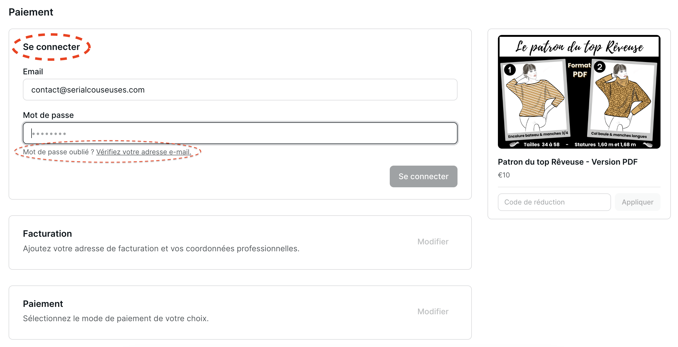 Puis cliquez sur "Se connecter" et poursuivez votre commande.