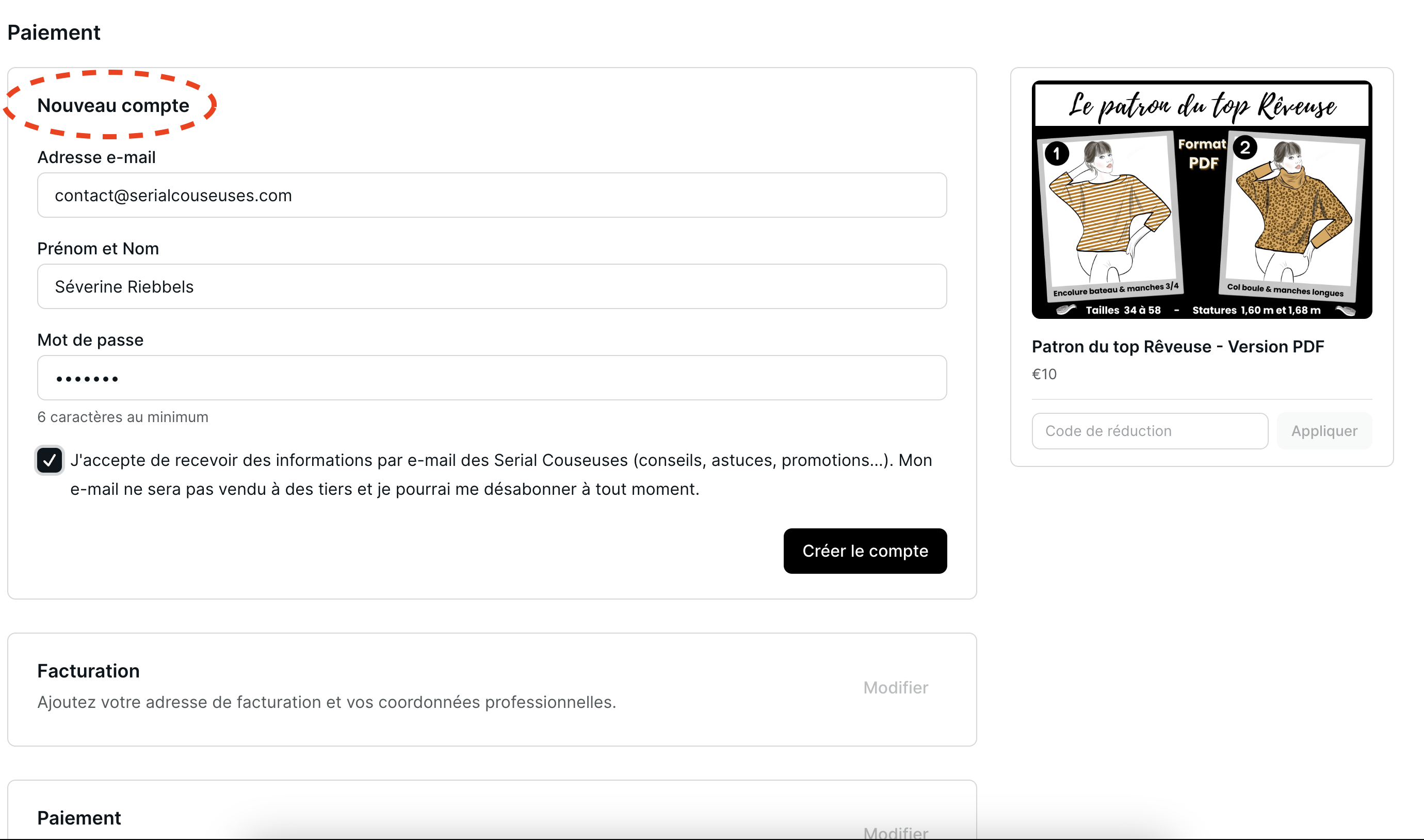 puis complétez votre adresse et vos informations de carte bancaire (pour les produits payants uniquement).