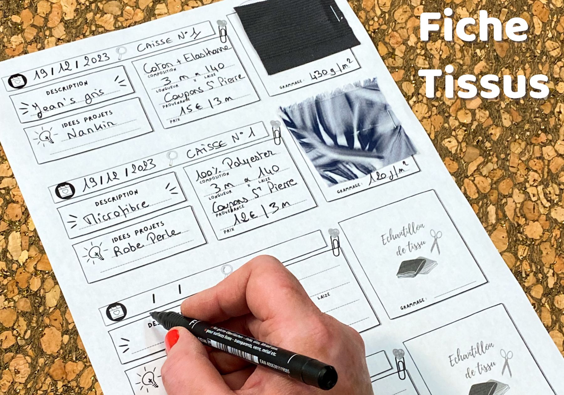 Cette fiche vous permettra de garder en mémoire la provenance, la composition, le grammage et le métrage de vos tissus.