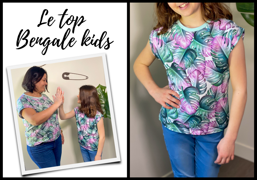 Réalisez de jolis duos mère-fille, avec cette déclinaison pour enfants du patron du top en jersey Bengale.